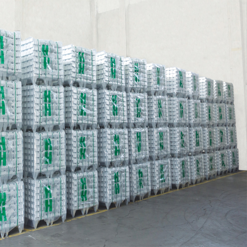 “HHZA”壓鑄鋅合金、鋁合金是由全自動鑄錠機鑄造成形。每條鋅合金、鋁合金上都印有相應的上期、班號和爐號以確保其質量追溯性??蛻粼谑肇浀耐瑫r也即時收到一份質量檢定證書(化驗單)以供憑證。